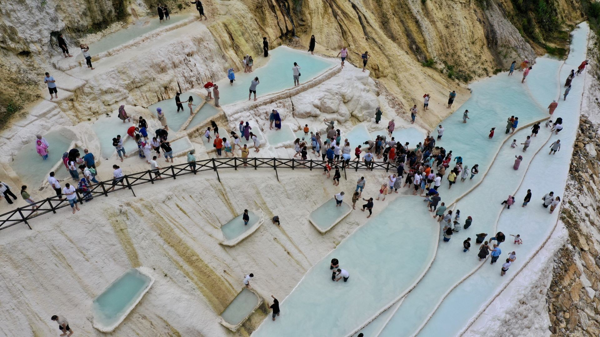 Turkuaz rengiyle büyüleyen bu eşsiz doğa harikası, görenleri kendine hayran bırakıyor.